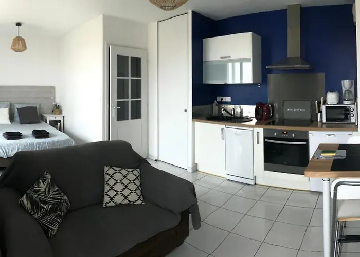 O apartamento Studio terrasse Apartamento oferece cozinha totalmente equipada, bem como quartos com equipamentos para café e chá, TV, uma televisão de ecrã plano com canais por satélite. Esta propriedade fica a apenas de 500 metros do Musée de l'Abbaye Sainte-Croix e a 2.2 km de Phare de l'Armandèche.